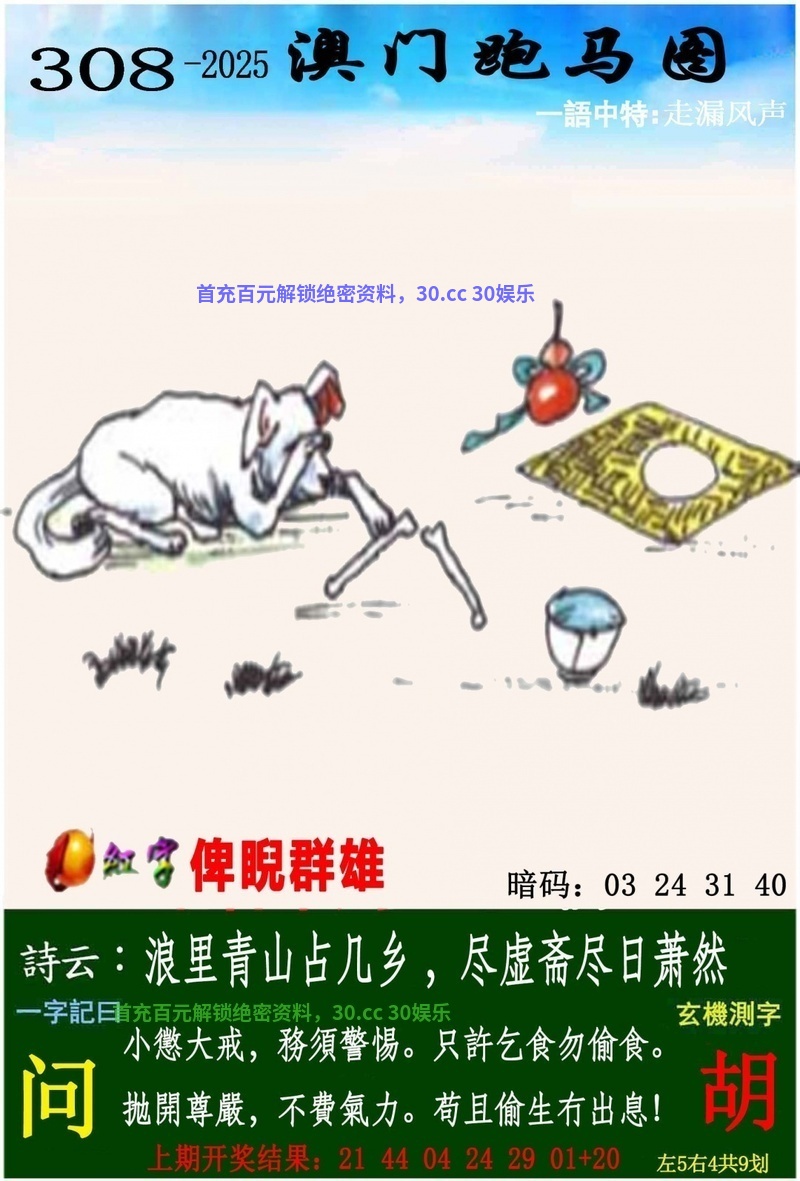 | 307期:七肖 | 虎羊兔鸡猪马狗 | 结果:狗20 |